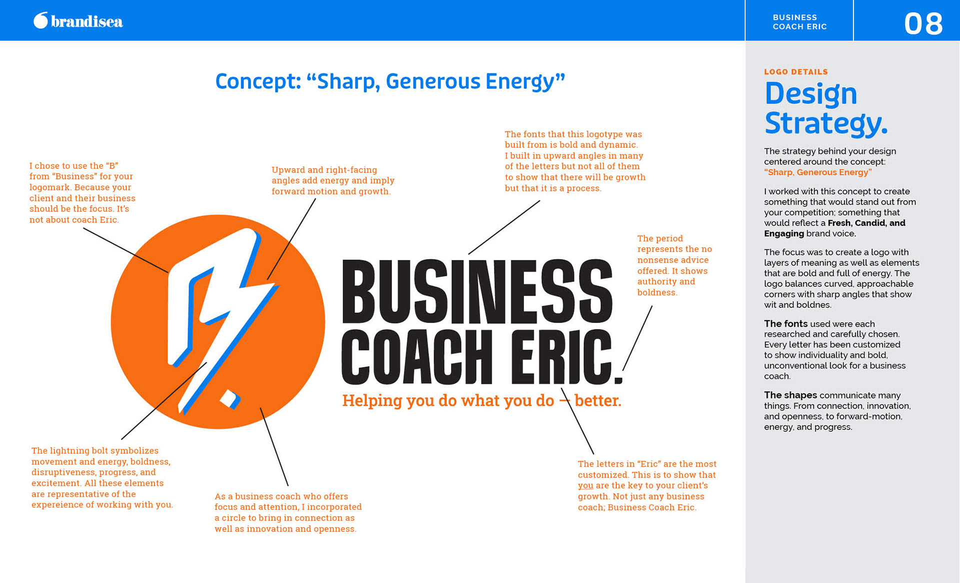The goal of this branding project was to create a compelling brand identity for Business Coach Eric, aka Eric Williams. The primary objective is to appeal to decision-makers like Eric's ideal client, “John” who runs a medium-sized business and needs some help leveling up but doesn't know how to do it on his own.
